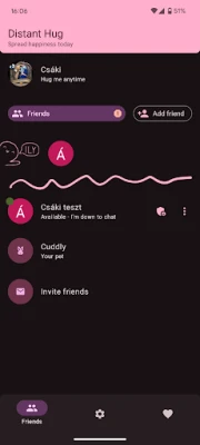 This is a social app where you can hug your friends by putting your phone to your chest. If you hug someone, the hugged person feels your heartbeat throuth the phone.
